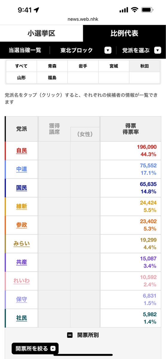 東北比例で、みらいは、投票率6.0%で議席をとりました。